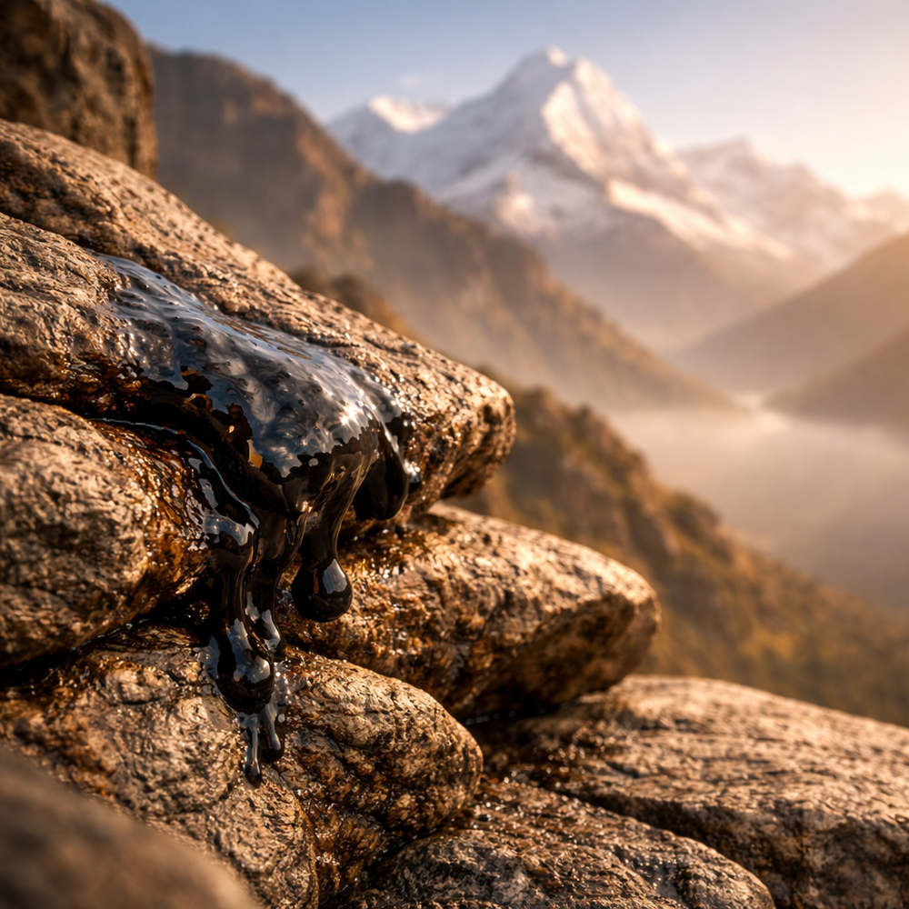 Shilajit is a natural mineral substance that forms over centuries in the rocky mountains of the Himalayas and other high-altitude regions. Often called "the destroyer of weakness" in Sanskrit, this dark, tar-like resin develops from the slow decomposition of plants and organic matter, compressed by layers of rock over thousands of years.